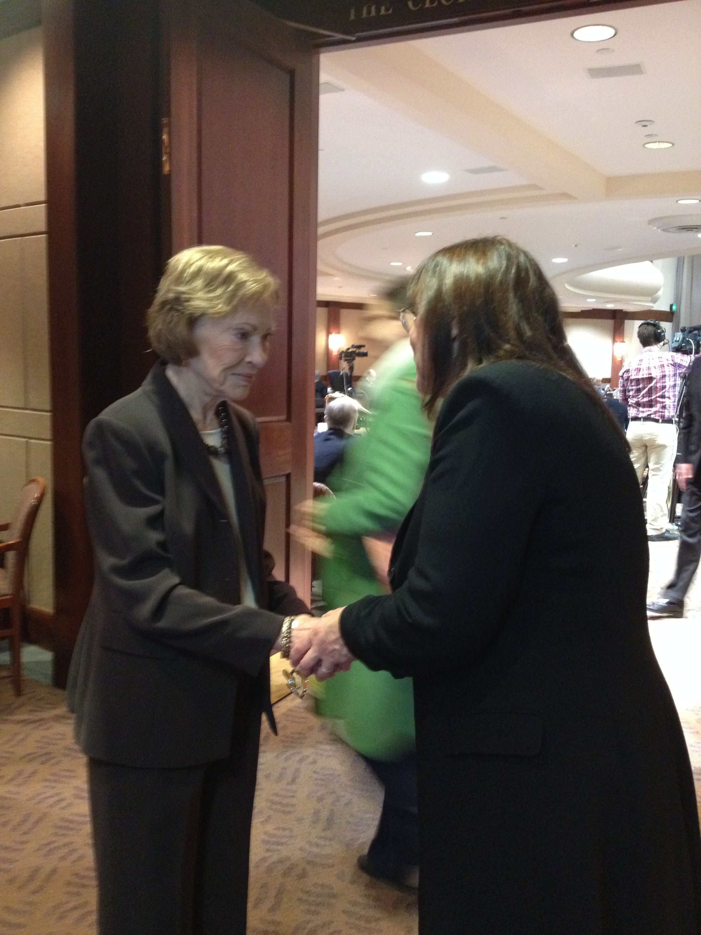 Former First Lady Rosalynn Carter shakes hands with AMHCA's Past President Judith Bertenthal-Smith.